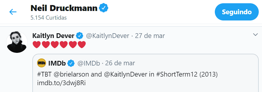 No twitter, ao compartilhar uma postagem do IMDb de Short Term 12, um de seus trabalhos de 2013 ao lado de Brie Larson, a publicação da atriz foi curtida por ninguém menos que o próprio vice-presidente da Naughty Dog e escritor e diretor de The Last of Us Part II, que também a segue na rede social.